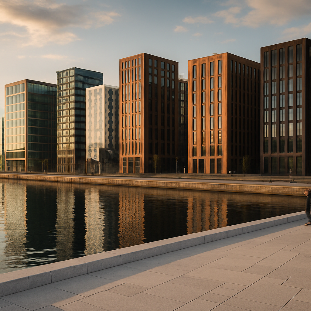 Die Gebäude sind schlank und hoch, doch die Barcode Quartier Architektur sorgt dafür, dass die Maßstäblichkeit auf Straßenniveau stimmt. Rücksprünge, Zwischenräume, kleine Plätze und Durchgänge brechen die langen Fassaden auf und schaffen intime Räume. Dadurch bleibt das Gehen angenehm – Du fühlst dich nicht wie in einer Steinwand, sondern wie in einer sorgfältig komponierten Abfolge von Orten.